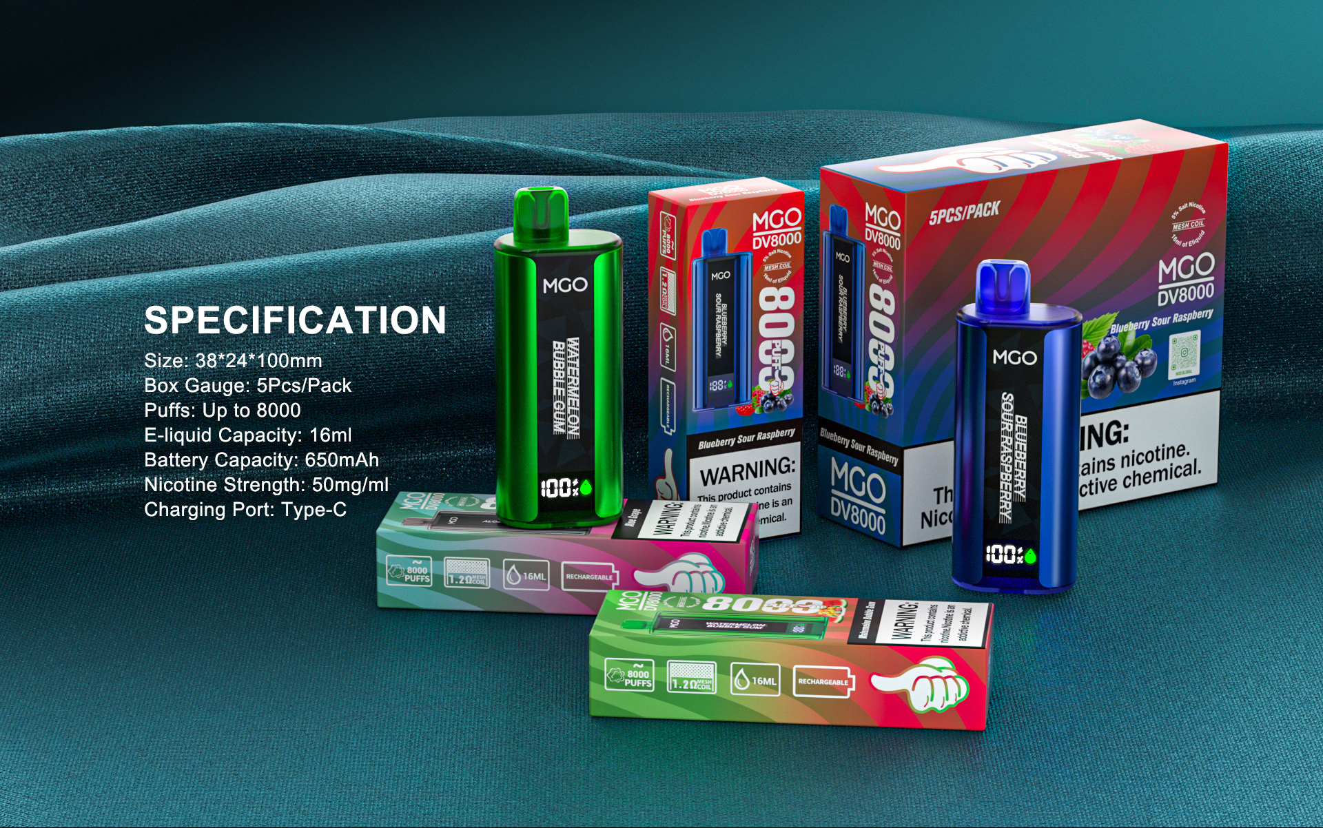 MGO DV8000 Disposable E-cigarette 8000 puffs 650mah battery