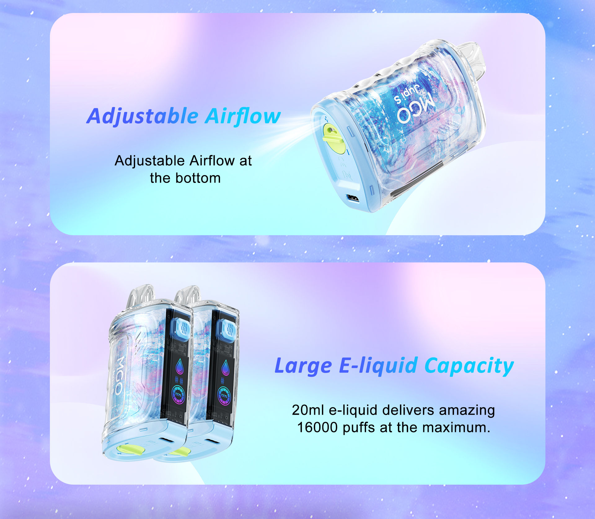 MGO Jupi S Disposables E-cigarette 16000 Puffs 500mAh battery