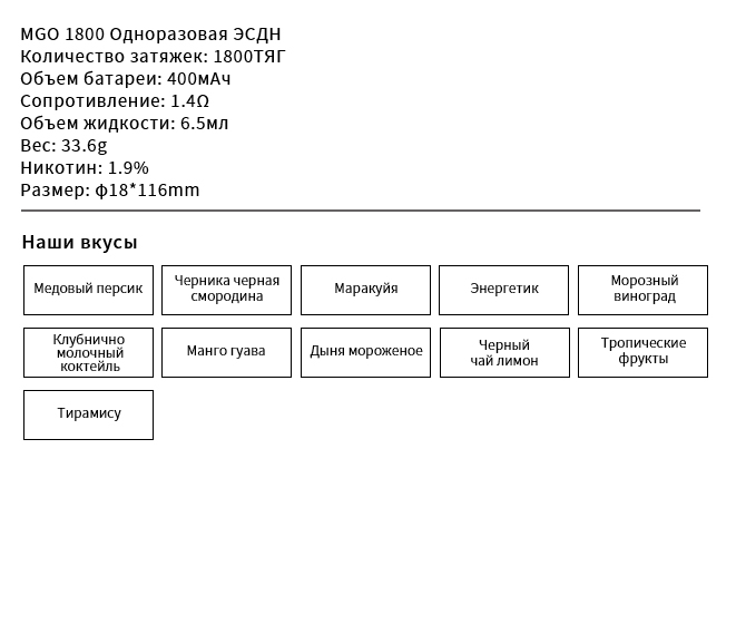 MGO Одноразовый электронный дым 1800Puffs