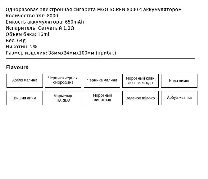 Одноразовая электронная сигарета MGO DV8000 с аккумулятором емкостью 650 мАч на 8000 затяжек